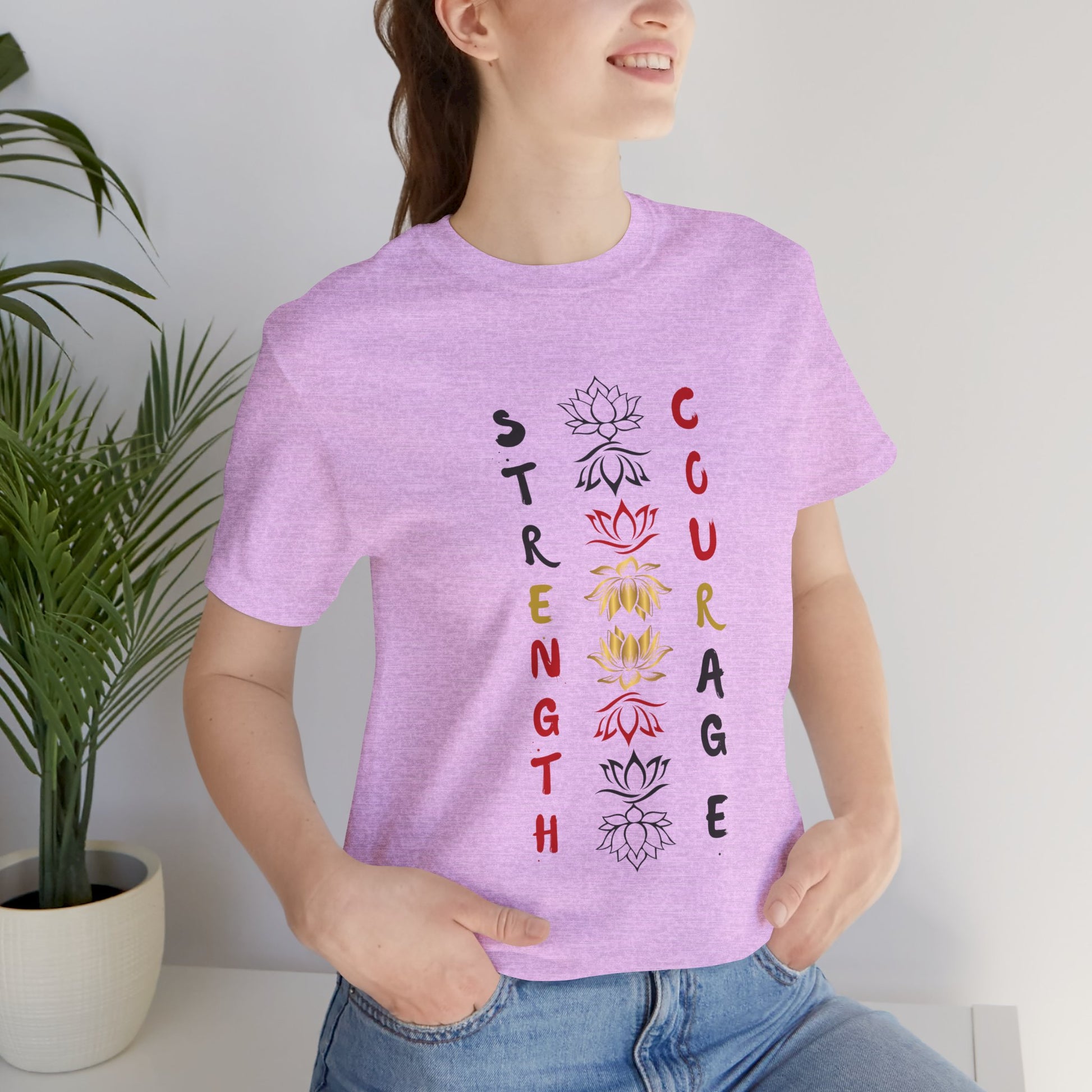 This Strength and Courage Graphic Tee is perfect for those seeking empowerment and inspiration. The unisex design makes it suitable for anyone looking to make a statement and show inner strength. Ideal for casual wear and perfect for occasions like Women's History Month or International Women's Day.